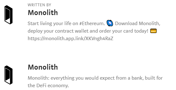 Primero: Aave está patrocinando un sorteo de aDAI. Así que estamos dando a 8 orgullosos propietarios de tarjetas Monolith la oportunidad de ganar 250 aDAI.