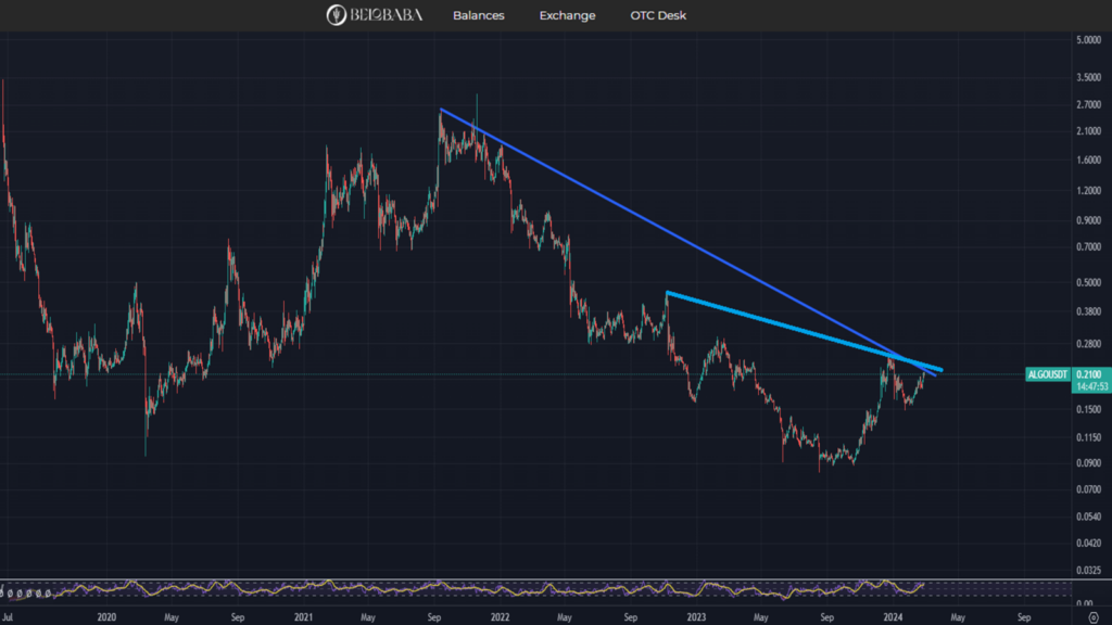 Técnicamente Algorand ($ALGO) parece estar generando diferentes figuras técnicas, con tendencia al alza que en su sumatoria reflejan una realidad que parece estar llegando.