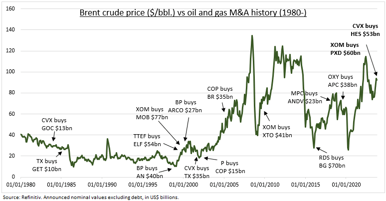 1) la confianza en que los precios del petróleo se mantendrán altos durante más tiempo, lo que justifica las fusiones y adquisiciones a estos precios sin precedentes.