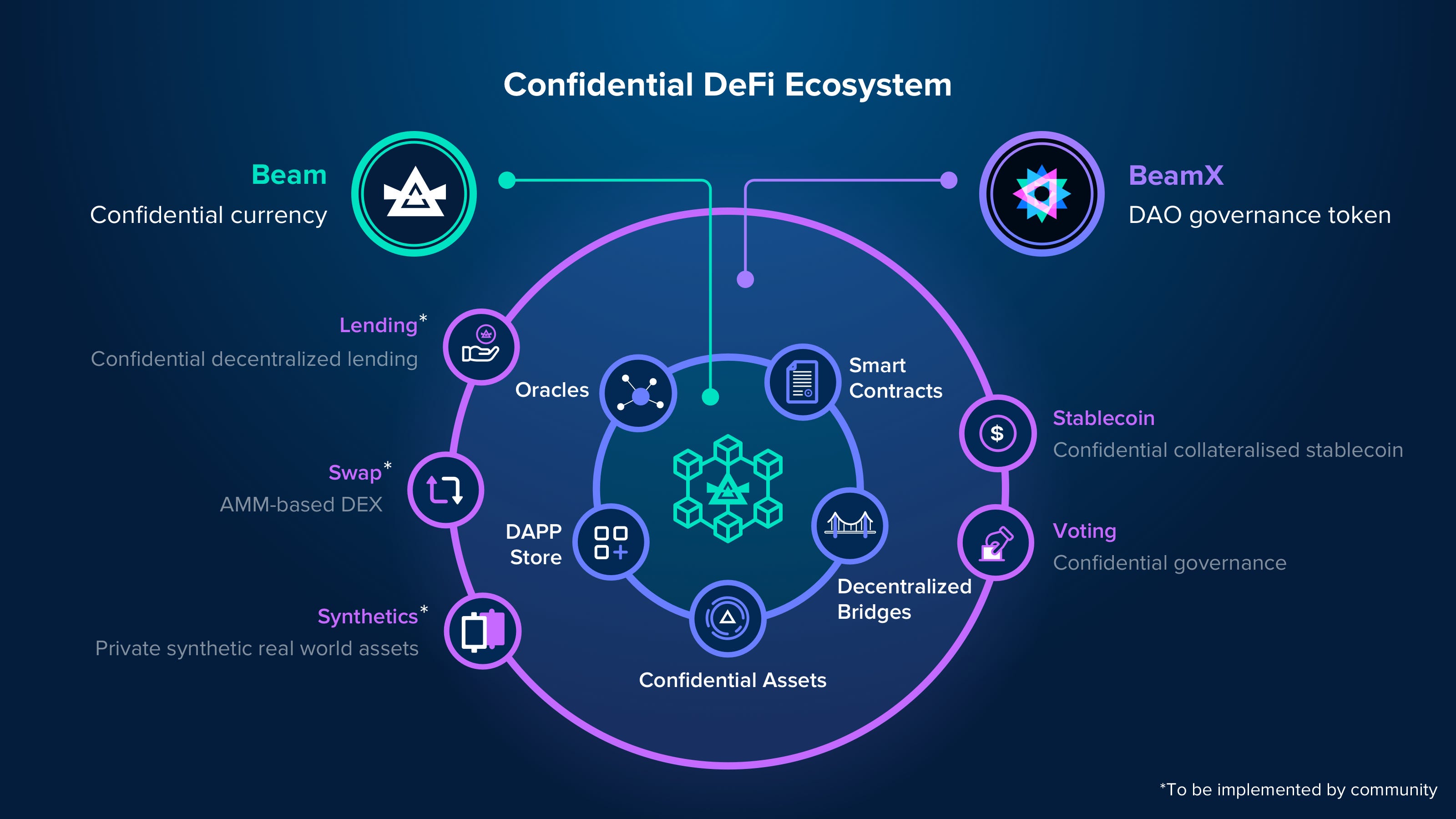 Beam está construyendo un ecosistema DeFi confidencial para habilitar aplicaciones descentralizadas (DAPP) para una variedad de casos de uso, desde gobernanza y votación hasta instrumentos financieros como comercio, préstamos y monedas estables. Profundicemos en lo que implica BeamX.