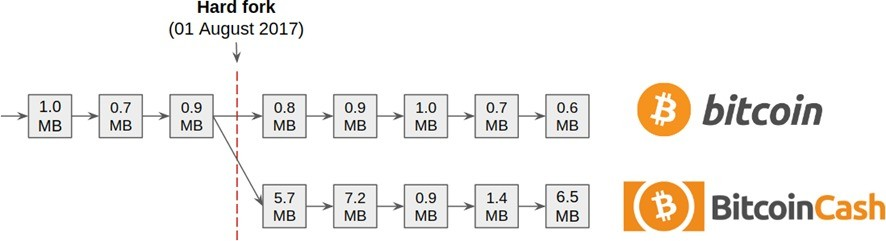 Incapaz de llegar a un consenso, la comunidad bitcoin experimentó una polémica bifurcación dura el 1 de agosto de 2017, que resultó en la creación de bitcoin cash. La diferencia clave entre bitcoin y bitcoin cash radica en sus respectivos tamaños de bloque.