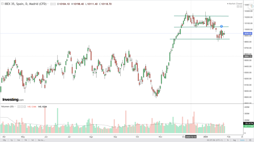 Desde un punto de vista técnico, tenemos apoyo en la zona de los 9800 y una debilidad manifiesta marcada por el sector bancario. Mientras esa referencia no se pierda, podemos pensar en un movimiento lateral con zona de control en los 10000 puntos. Perder los 9800 abre el camino hacia los 9700 primero y los 9600-9550 como zonas relevantes. Por arriba, recuperar los 10000 volvería a establecer los 10250 como siguiente resistencia a tantear.