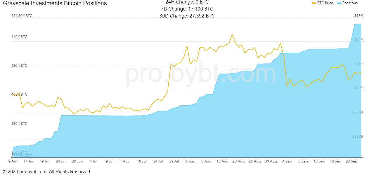 Además, los datos de Bybt muestran que Grayscale Bitcoin Trust (GBTC) compró 17,100 BTC en los últimos siete días, aumentando su posición agregada de Bitcoin a 449,900 BTC . Esta acumulación explica, hasta cierto punto, por qué el precio de Bitcoin no cayó más a pesar de las fuertes expectativas del mercado bajista la semana pasada.