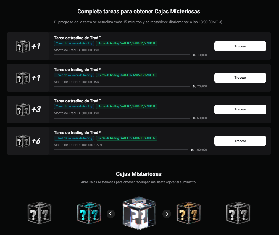 3. Las tareas diarias se restablecen todos los días a las 13:00 (GMT-3). Las tareas para usuarios nuevos no se restablecerán.