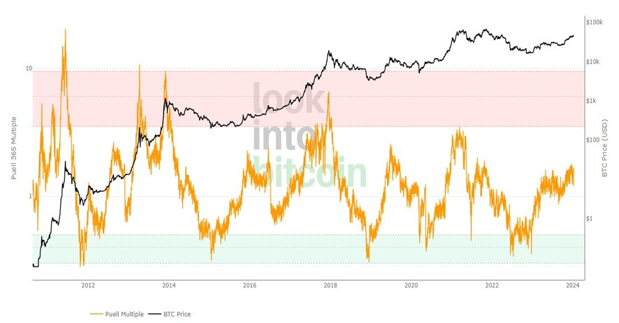 En el gráfico anterior muestro esta situación. Análisis onchain de Puell Multiple.