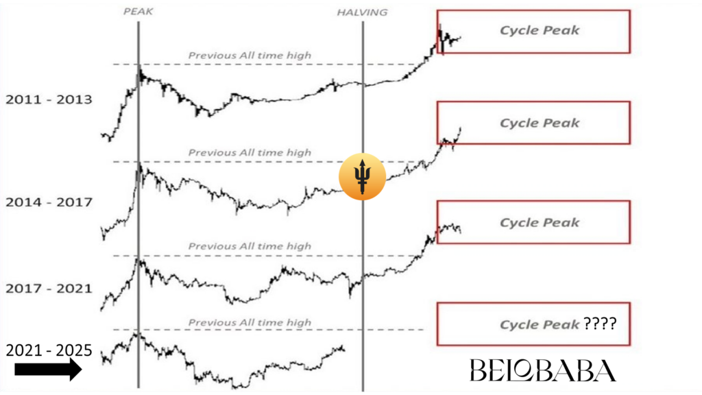 A continuación, se presenta un esquema general de los ciclos históricos de bitcoin: