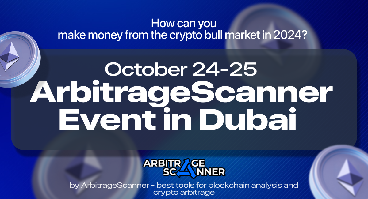 Ya en el evento Arbitrage Scanner en Dubai, podrá encontrar casos rentables sobre cómo ganar dinero en el mercado, incluso con la ayuda del análisis de blockchain. El equipo y los clientes del servicio compartirán conocimientos prácticos que lo ayudarán a evaluar de manera competente el mercado, encontrar billeteras rentables y ganar dinero. Este es un evento privado exclusivo abierto solo para invitados VIP y clientes de ArbitrageScanner que ya han logrado altos resultados, incluso en el arbitraje de criptomonedas.