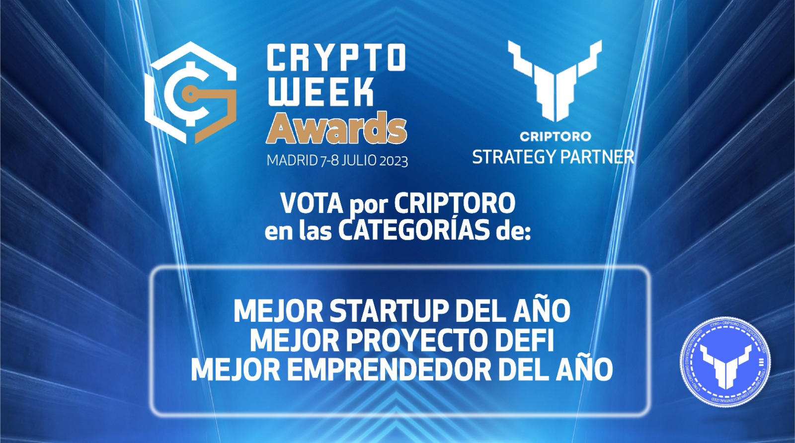 Os pedimos vuestra colaboración y voto a través de este link para las categorías donde además nos presentamos en los Awards del Crypto Week Summit: