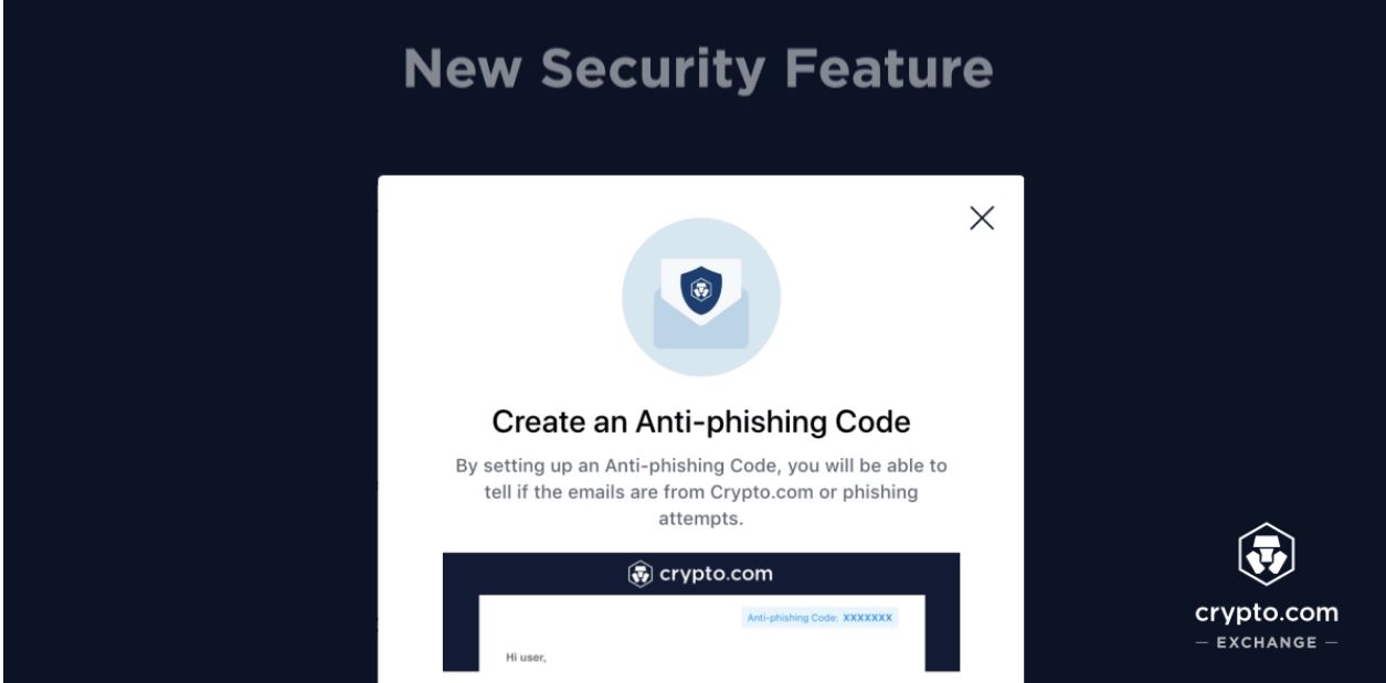 Rápido y fácil, los usuarios pueden configurar un código personalizado y reconocible que se mostrará en todos los correos electrónicos legítimos enviados a los usuarios desde Crypto.com Exchange.