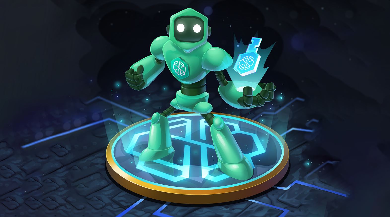 Juega tres o más juegos de blockchain (un juego de cada parte) hasta que recuperes con éxito una cabeza, torso y piernas de Cyborg.