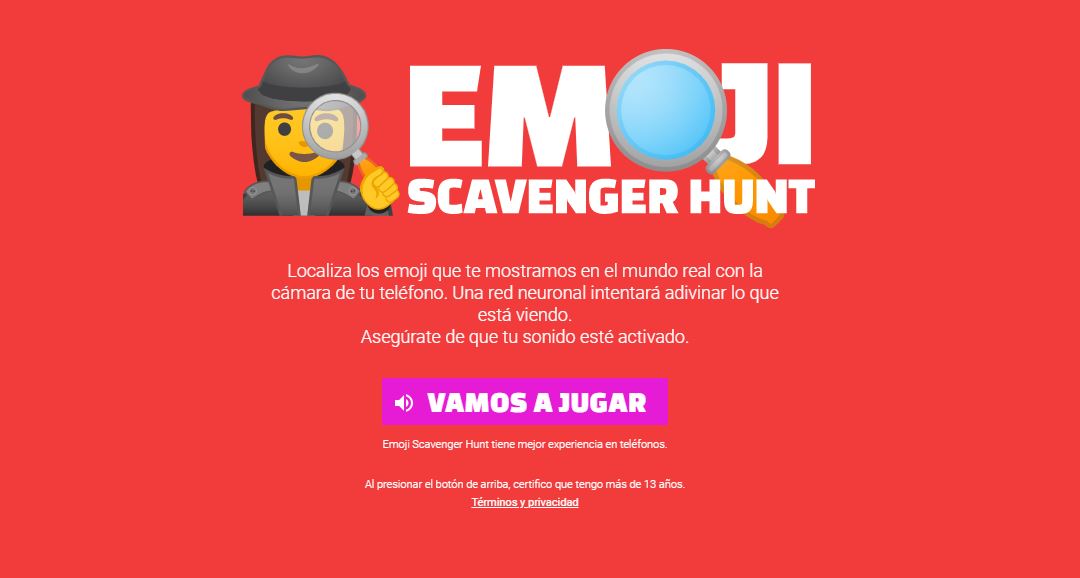 - Encuentra emojis en el mundo real con Emoji Scavenger Hunt. Este divertido juego basado en el reconocimiento de imágenes reta al usuario a localizar en su entorno el emoji que el juego indica antes de que se acabe el tiempo. Juega solo o en compañía y comparte tu puntuación en las redes sociales.