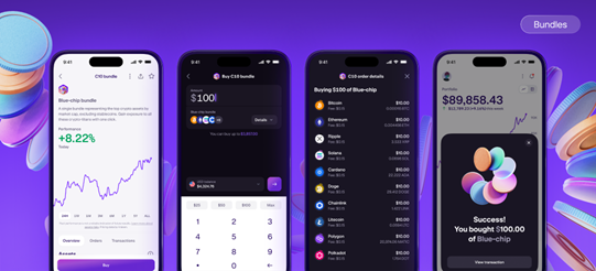 Paquetes permite adquirir conjuntos de criptomonedas estructurados según distintas temáticas o criterios de mercado. Cada uno de estos paquetes se reequilibra automáticamente y no conlleva comisiones de trading. Asimismo, es posible configurar compras periódicas para facilitar una estrategia de inversión automatizada a largo plazo. Los activos incluidos en cada bundle pueden venderse en cualquier momento o convertirse en saldos individuales dentro de la cuenta del usuario.