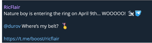 La leyenda de la lucha libre Ric Flair lanza paquete exclusivo de stickers tokenizados en Telegram