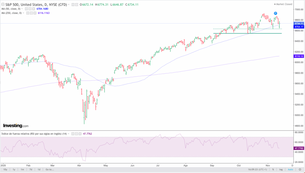 Desde un punto de vista técnico, la zona clave a vigilar en el corto plazo pasa primero por los 6630 puntos y los 6550-6580 puntos como referencias técnicas inmediatas. Perder esos 6550 avisaría de un movimiento correctivo de mayor importancia. La media móvil de 50 sesiones está en esas zonas y de momento se ha respetado al cierre. El sentimiento inversor sigue en zona de miedo y pese a que la volatilidad alcanzó (VIX) niveles por encima de los 20 puntos, de momento no indica un riesgo inminente. Lo que si necesita el indicador es superar los 6880 puntos para conservar ese movimiento de máximos ascendentes.