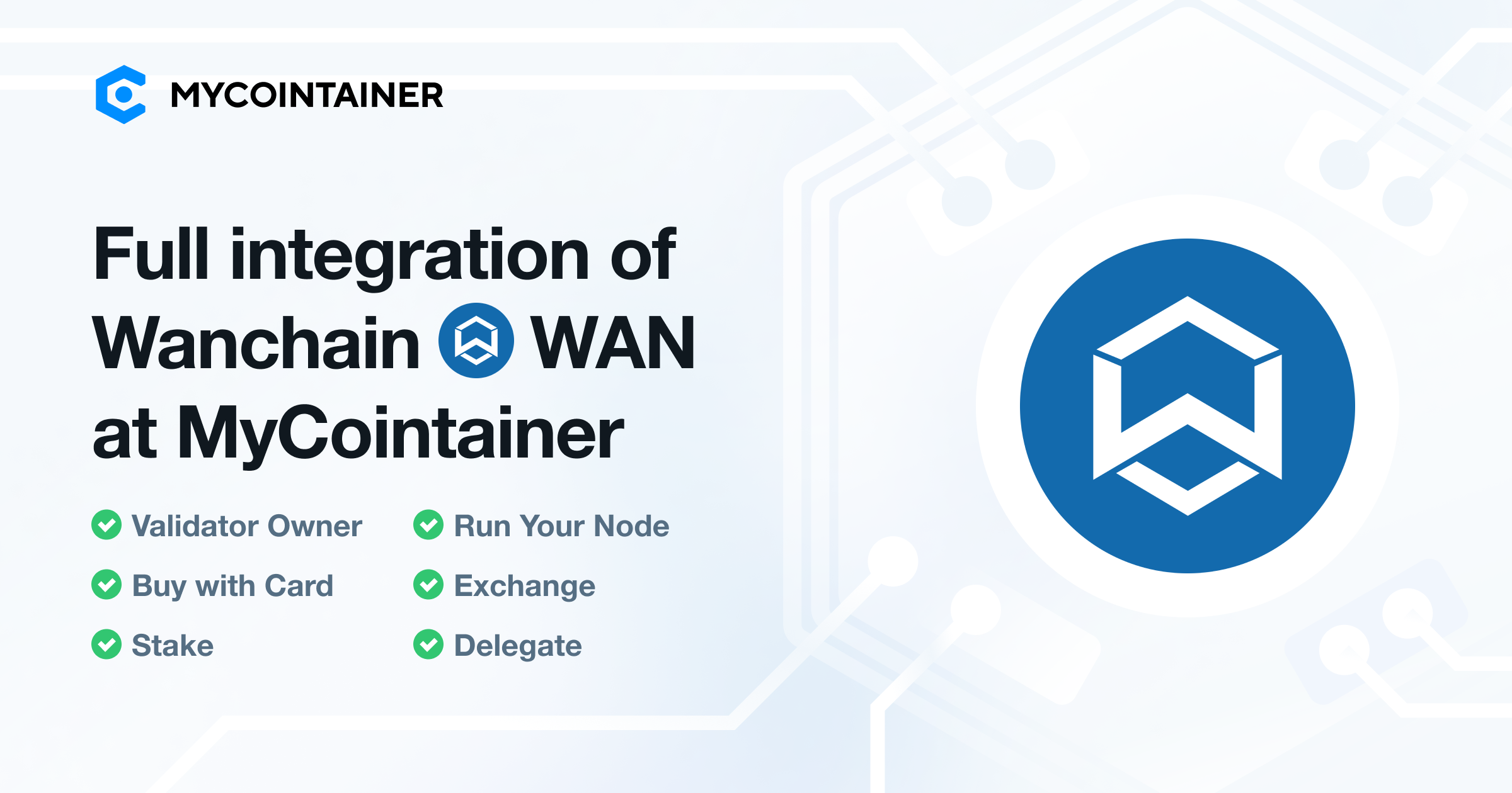 MyCointainer se compromete a brindar a nuestros usuarios las mejores oportunidades para participar en el ecosistema de la cadena de bloques. Con la adición de $WAN a nuestra plataforma, nos complace ofrecer a nuestros usuarios más formas de obtener ingresos pasivos y participar en el crecimiento del ecosistema de Wanchain .