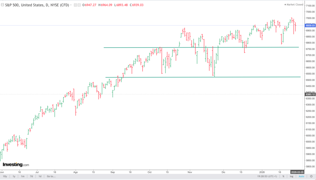El SP500 logró cruzar por primera vez el nivel psicológico de los 7.000 puntos, aunque duró poco. Ese hito, que en otro contexto habría sido celebrado, se convirtió en un punto de giro. No porque el nivel fuera “caro” en sí mismo, sino porque coincidió con un cambio sutil pero relevante pues la Reserva Federal dejó claro que el ciclo de recortes no es automático, y el mercado, que había interiorizado una narrativa de liquidez casi infinita, empezó a reajustar expectativas.