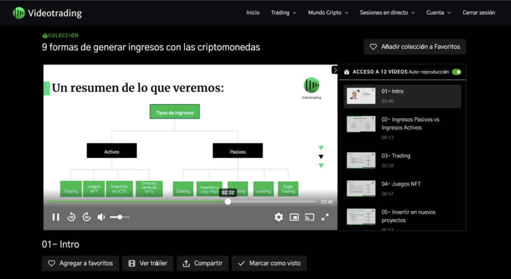 Videotrading es una app que, mediante suscripción anual, te da acceso a decenas de cursos, análisis y sesiones en directo para que perfecciones tus conocimientos de trading y criptomonedas.
