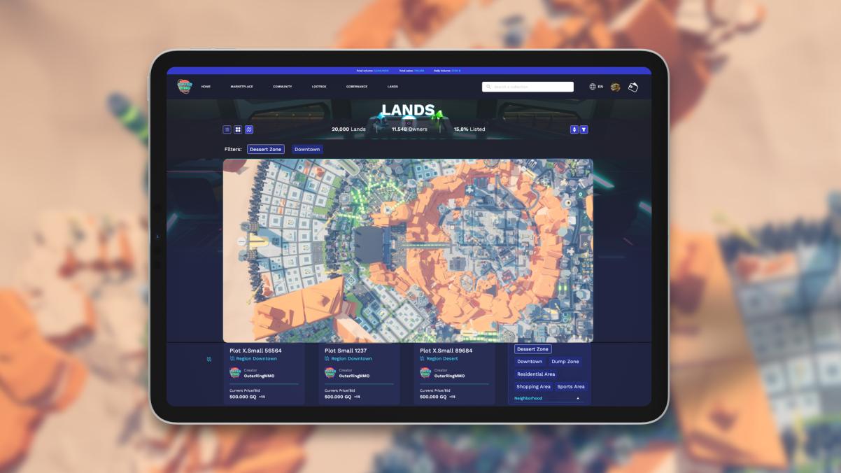 Las primeras Lands dentro de Outer Ring MMO estarán disponibles en su Dapp el 15 de marzo. El juego abrirá la primera subasta pública, de las cuatro totales, en exclusiva para los holders de la colección de NFT Early Explorers. Estas Lands tendrán funcionalidades tanto dentro del juego, obteniendo almacenamiento adicional, como fuera del mismo, generando materiales tokenizados.