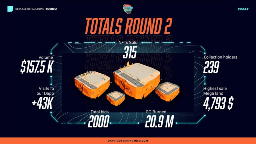 Pamplona, España. 4 de mayo 2023— Outer Ring MMO lo ha vuelto a hacer. Tras generar una gran expectación entre la comunidad blockchain con el lanzamiento de su primera ronda de NFT Lands, la cual obtuvo un volumen de $266k, la segunda ronda no se ha quedado atrás. Esta vez con un formato de subastas abiertas a todo el público, la colección Great Silver City Lands ha contado de nuevo con una enorme participación.