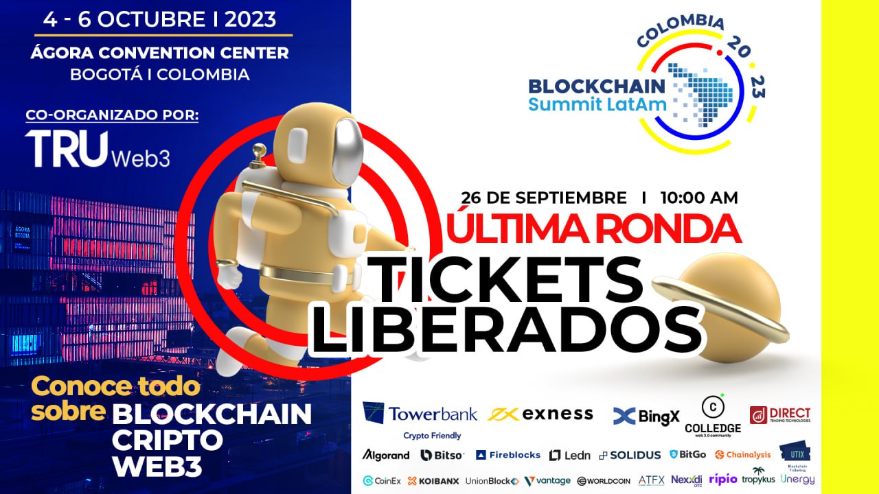 Bogotá, 21 de septiembre de 2023.- El Blockchain Summit Latam, el evento empresarial de blockchain y criptomonedas más grande de América Latina, hace una cordial invitación a la comunidad cripto para participar en la última ronda de entradas de cortesía de su séptima edición a celebrarse en Bogotá del 4 al 6 de octubre.