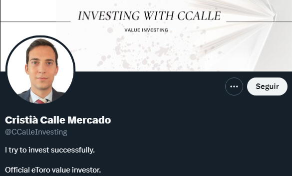 Calle fue uno de los primeros usuarios de eToro, pero no descubrió su verdadera pasión por la inversión hasta hace unos años, cuando encontró una pasión que había estado latente durante mucho tiempo por estudiar empresas y leer sobre su funcionamiento. Mediante análisis cuantitativos y cualitativos, determina el valor intrínseco de una empresa y elabora su propio valor estimado. Si Calle no puede determinarlo por sí mismo, no invierte.