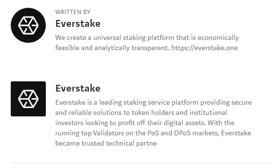 Everstake es administrado por expertos experimentados en blockchain y admite muchos proyectos grandes basados en PoS y DPoS como validador. Obtenga más información sobre el proyecto Everstake en su blog y redes sociales.