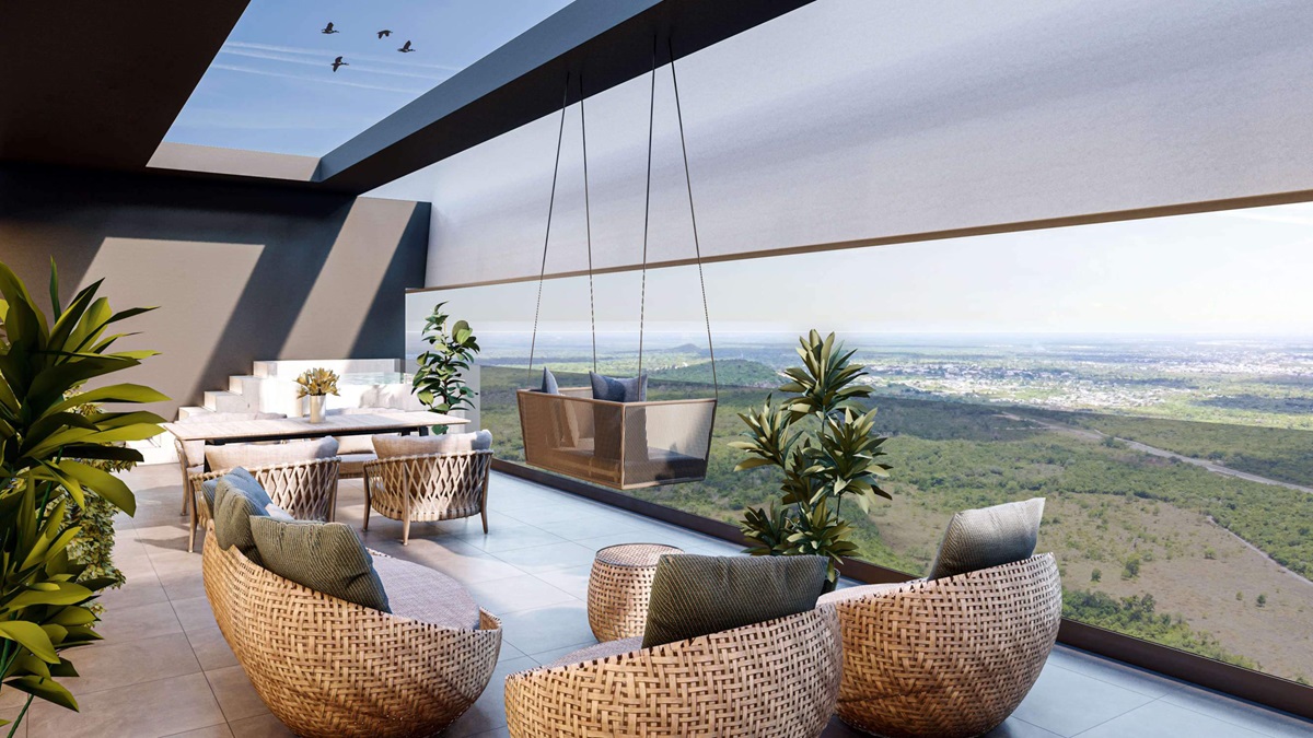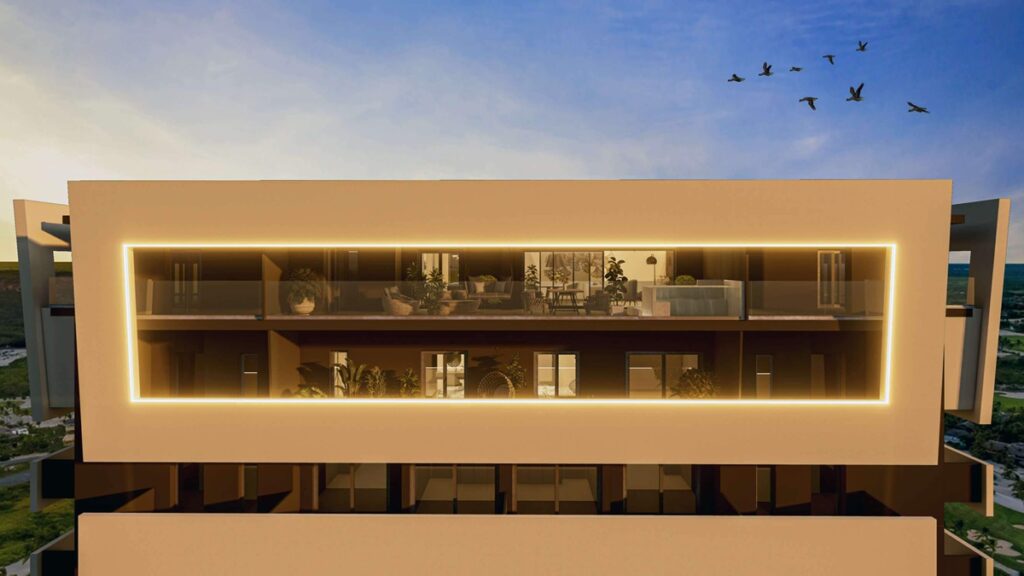 Se trata de dos apartamentos de 90 m2 cada uno, con dormitorio, baño y terraza privada, ubicados en el complejo Larimar City & Resort, una smart city autosuficiente y sostenible, pensada tanto como destino vacacional, segunda residencia o residencia permanente, o bien como inversión inmobiliaria altamente rentable.