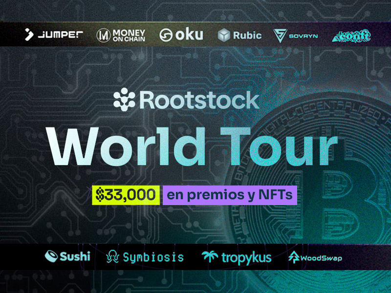 “Rootstock World Tour” es una iniciativa global que destina 33.000 dólares en premios para hacer awareness sobre la Layer 2 de Bitcoin con más trayectoria y TVL de todas. La gira consta de 10 misiones, cada una en un destino diferente dentro del ecosistema de Rootstock.