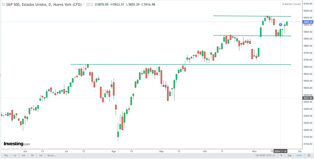 Desde un punto de vista técnico, seguimos manteniendo la zona de los 6000 puntos como la que marca control de referencia alcista. Desde ahí, corrección hasta el primero de los soportes delimitado por los 5850-5870 puntos y rebote. Mientras esa zona se mantenga, seguiremos con predisposición alcista. Sin embargo, el perder los 5850 nos llevaría a los 5750 puntos primero y a los 5670 como la primera zona clave de cierto relieve. La volatilidad sigue baja, el sentimiento en zona de euforia, pero no extrema y añadimos el control de los flujos.